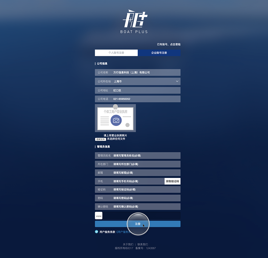 1.2.1企業(yè)用戶注冊