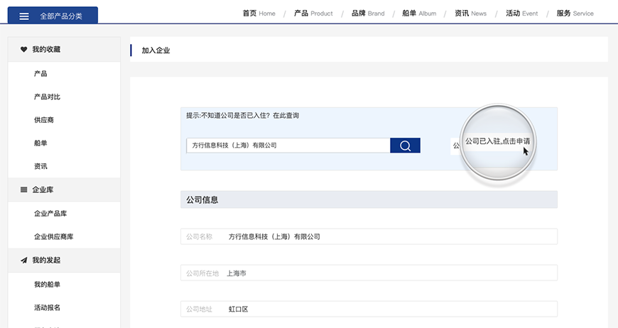 點(diǎn)擊【公司已入駐,點(diǎn)擊申請】