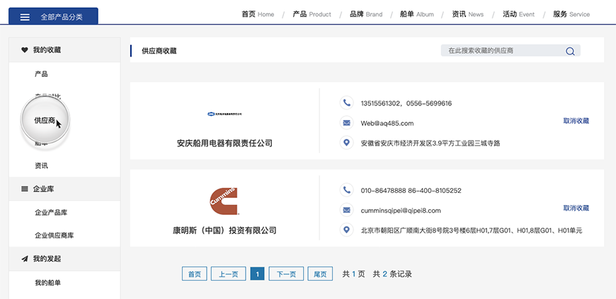 2.1.2我的供應(yīng)商收藏