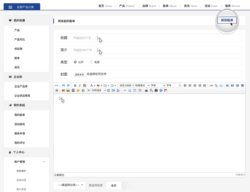 一是船單的基本信息,包括標(biāo)題、日期、描述、文件等。
