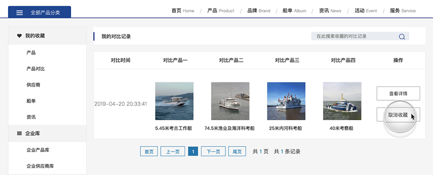 可以在我的收藏產(chǎn)品里面取消某個(gè)產(chǎn)品的收藏,并進(jìn)行搜索。