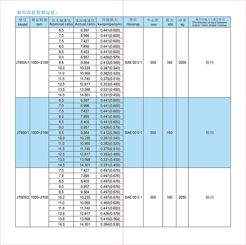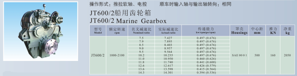 前進名義減速比: 8.5 輸入轉速: 1000-2100rpm