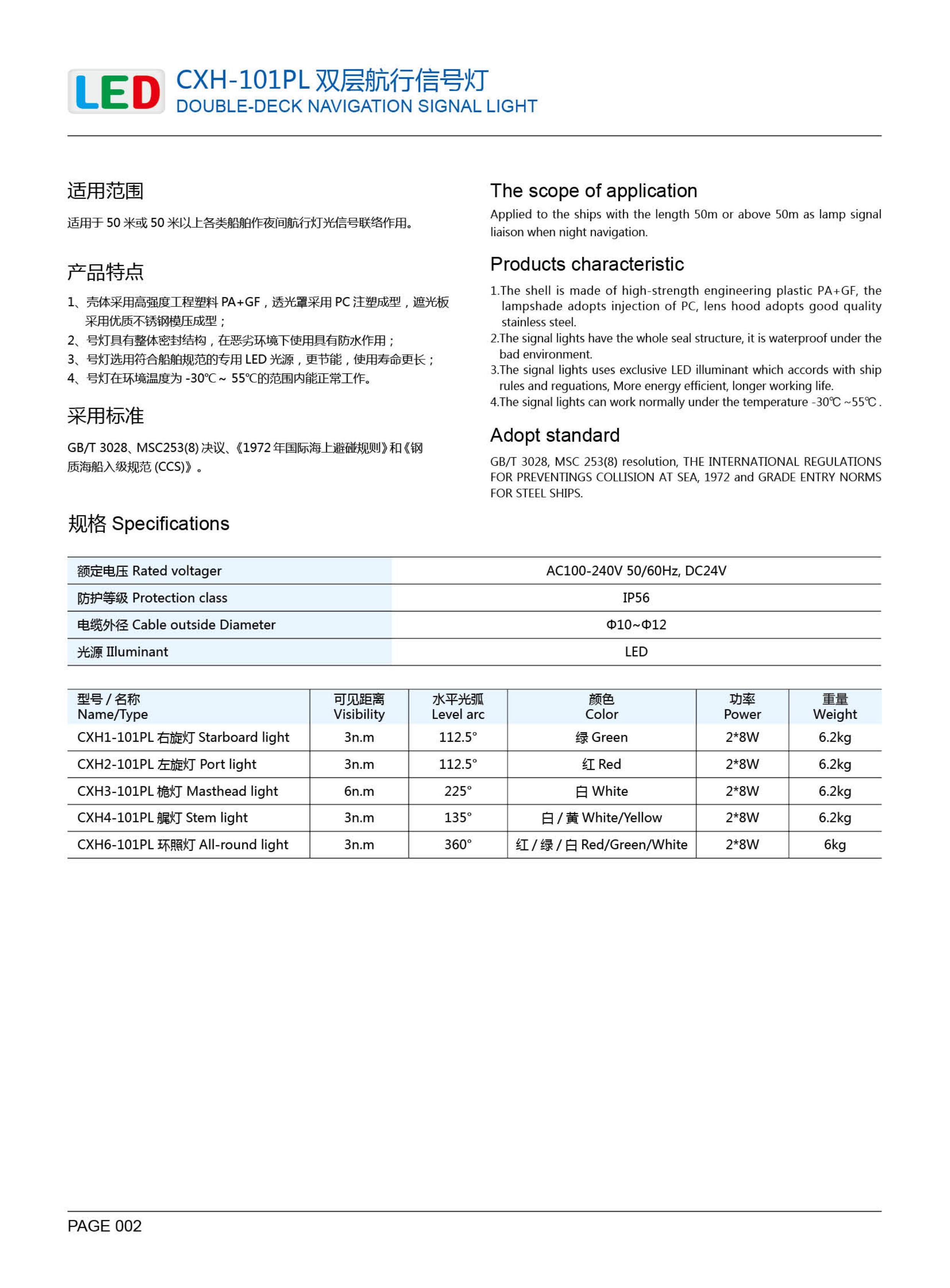 | 適用區域: | 3n.m | 適用船型: | 135° |