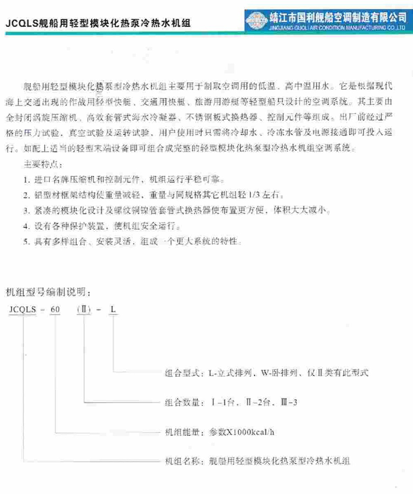 | 艦船用輕型模塊化熱泵冷熱水機(jī)組 | |||