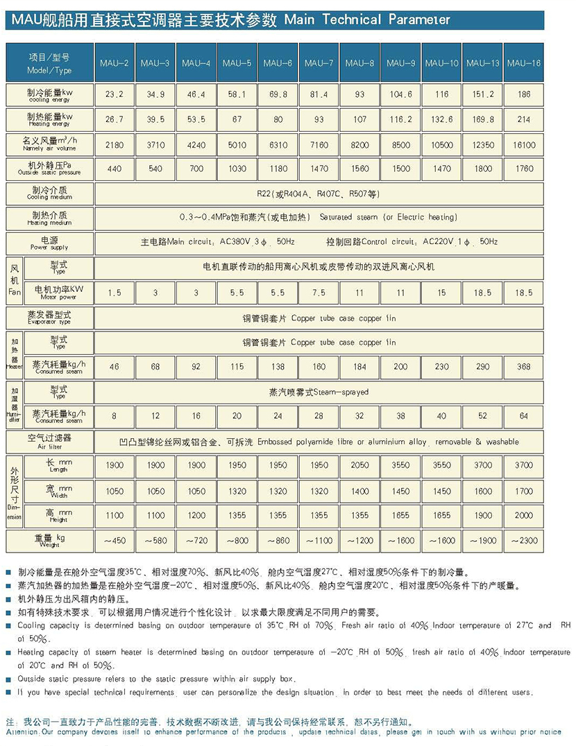 機外余壓: 440Pa 制冷介質: R22(或R404A,R407C,R507等)