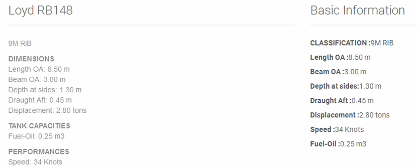| 8.5米剛性船體充氣艇 | |||