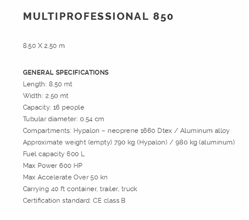 | 8.5米鋁剛性船體充氣多用途公務艇 | |||