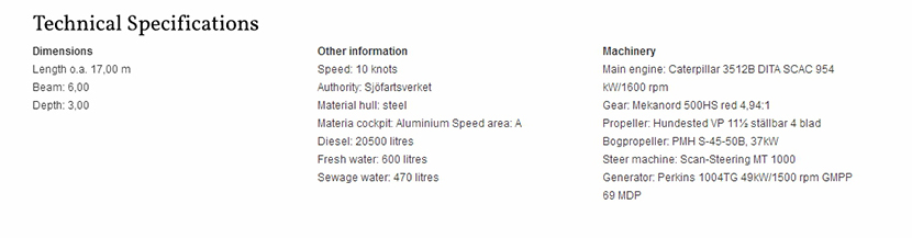 | 總長: | 17m | 航速: | 25kn |
