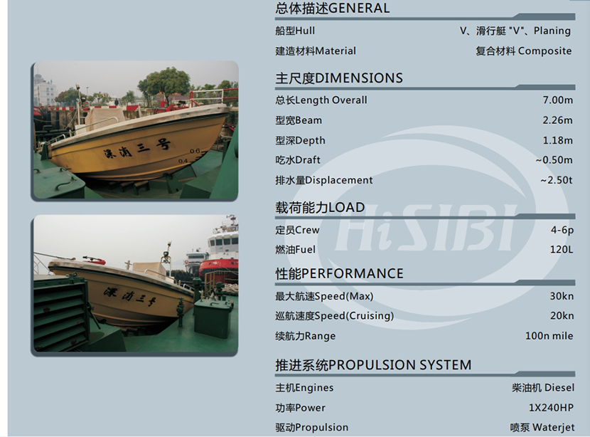| 總長(zhǎng): | 7.00m | 航速: | 20kn |