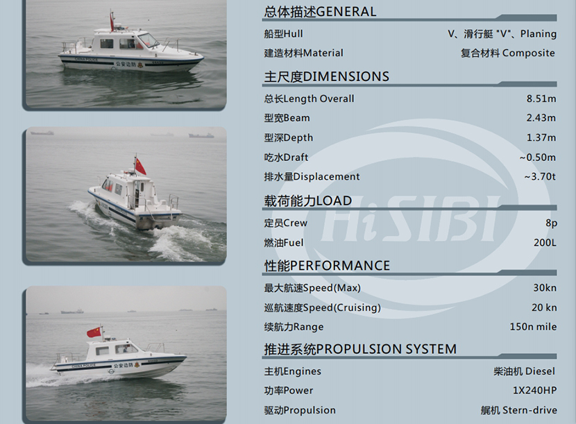 | 8.51米高速巡邏艇、中V船型 | |||