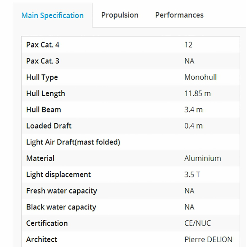| 總長: | 11.85m | 型寬: | 3.4m |