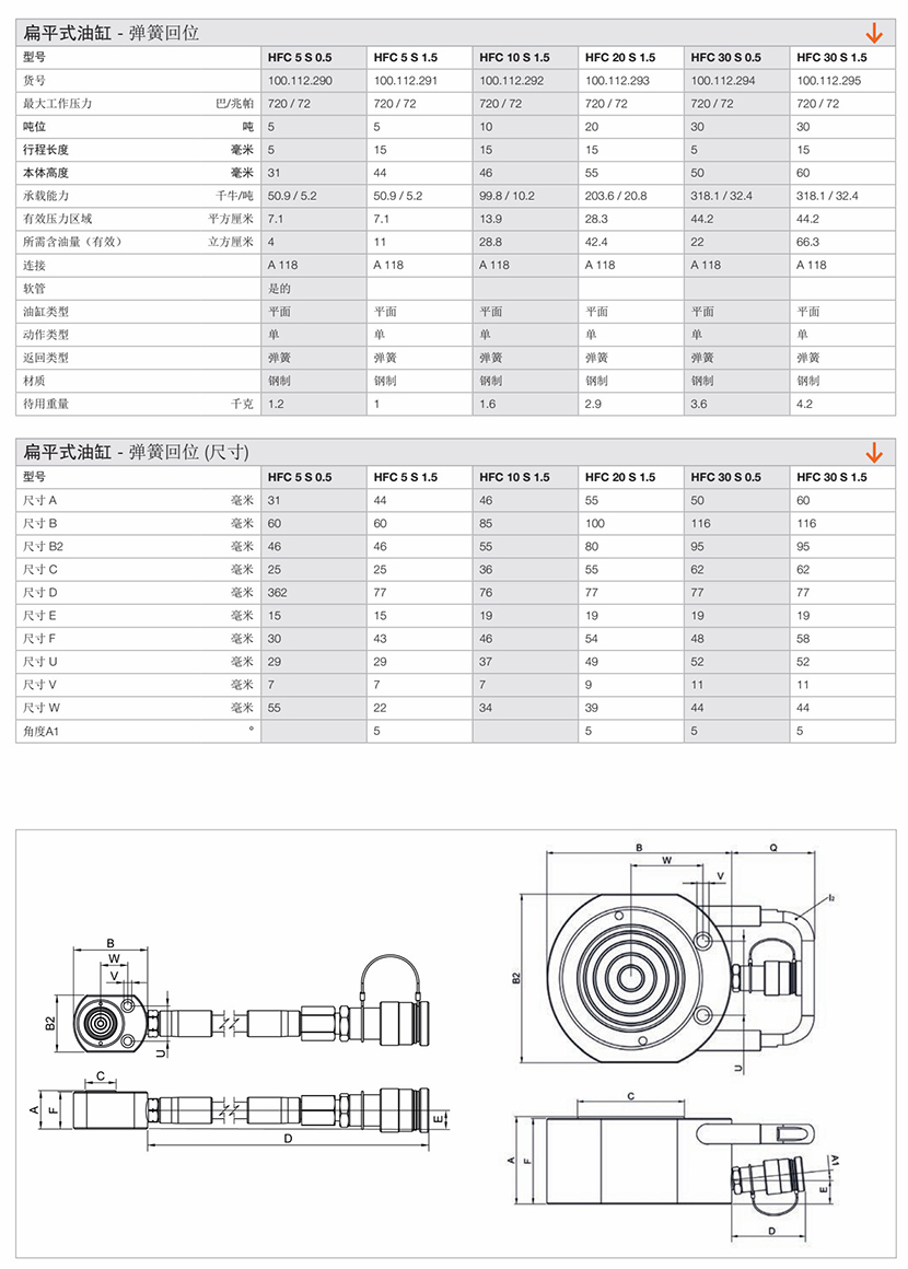| 扁平式彈簧回位油缸 | |||
