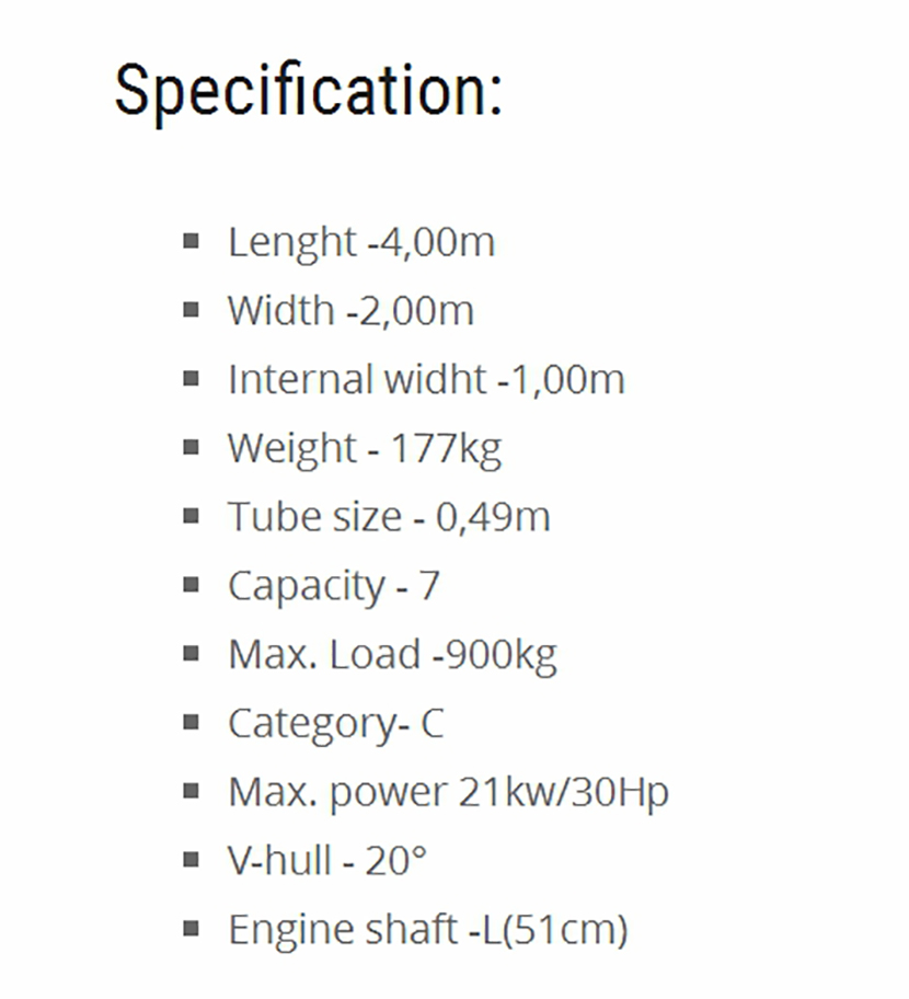 總長: 4.00m 最大乘員: 7p