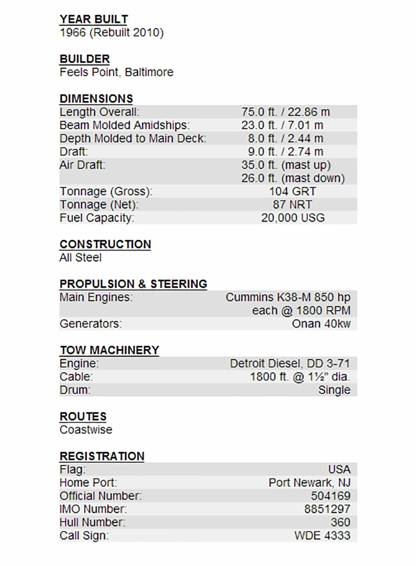 | 總長: | 22.86m | 發動機功率: | 2×850hp at 1800rpm |