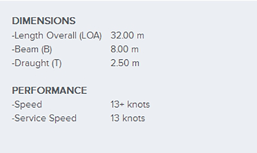 | 總長: | 32m | 航速: | 13kn |