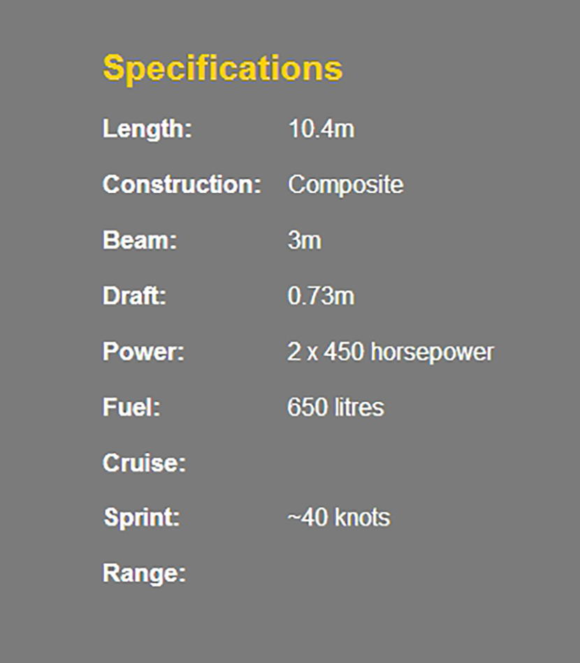 | 總長: | 10.4m | 航速: | 40kn |