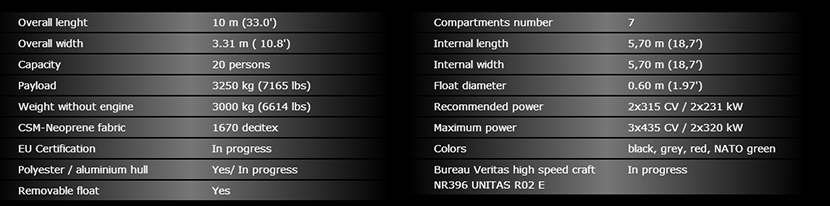 | 總長: | 10m | 發動機功率: | 3×435hp |
