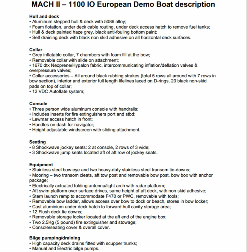 | 排水量: | 7500kg | 發動機功率: | 2×480HP |