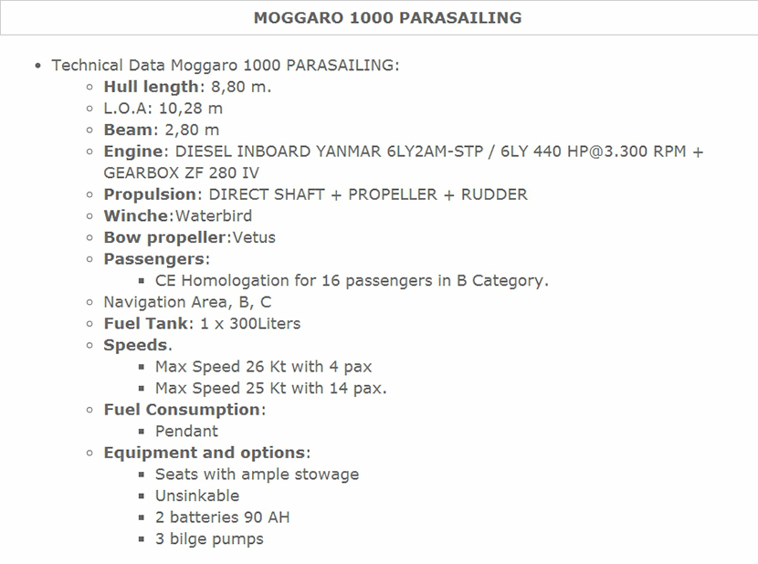 燃油容量: 1x300Liters 推進裝置: 螺旋槳