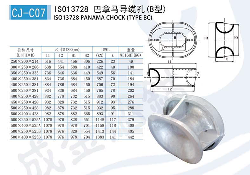 ISO 13728巴拿馬導纜孔(A型)CJ-C06-8滕州市成金機械制造有限公司More |