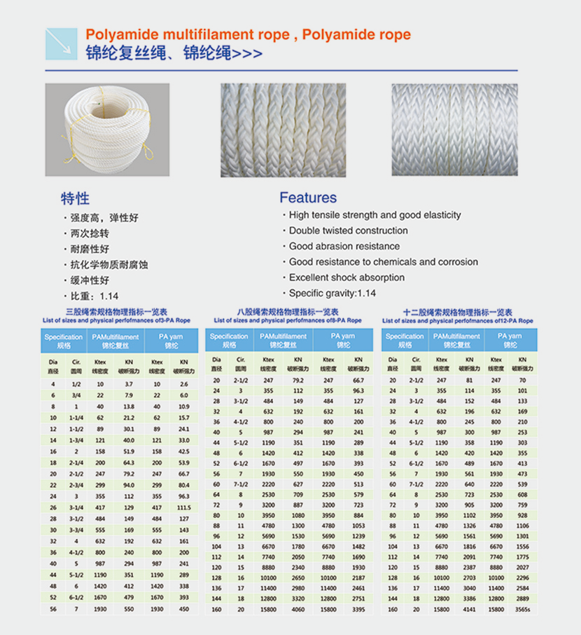 | 錦綸復絲繩、錦綸繩(十二股) | |||
