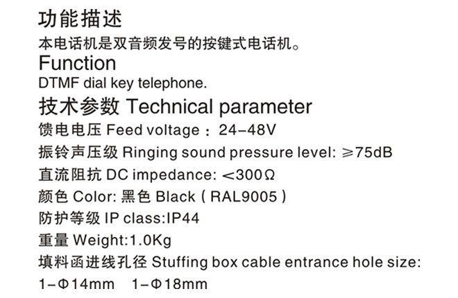 饋電電壓: 24-48V 振鈴聲壓級: ≥75dB