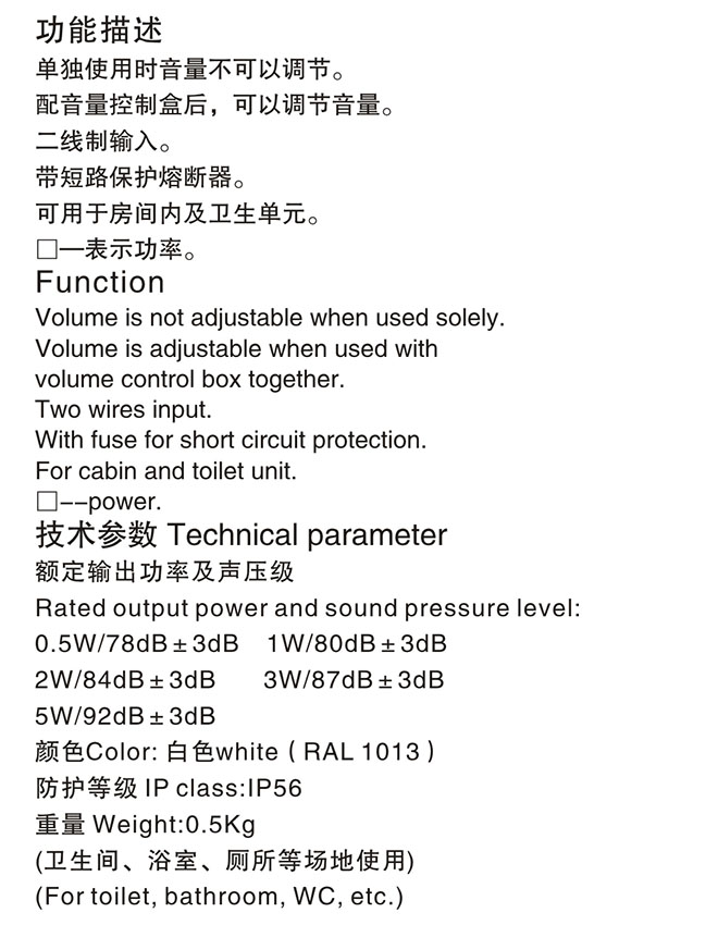 | 功率: | 1W | 聲壓等級: | 80dB |