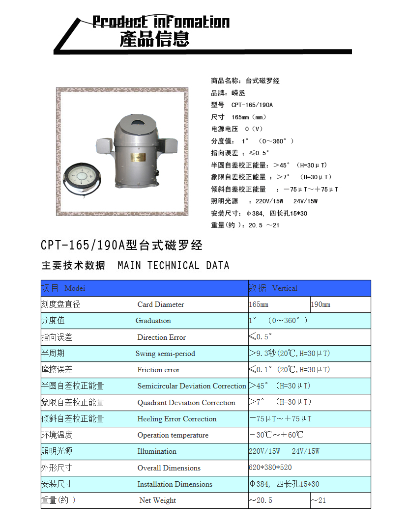 | 主半圓自差校正能量: | >45° | 象限自差校正能量: | >7° |