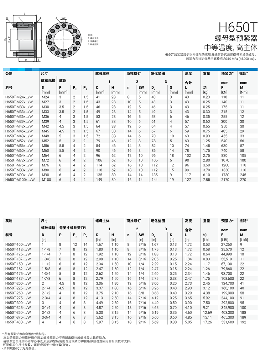 | 中等溫度,高主體螺母型預緊器 | |||
