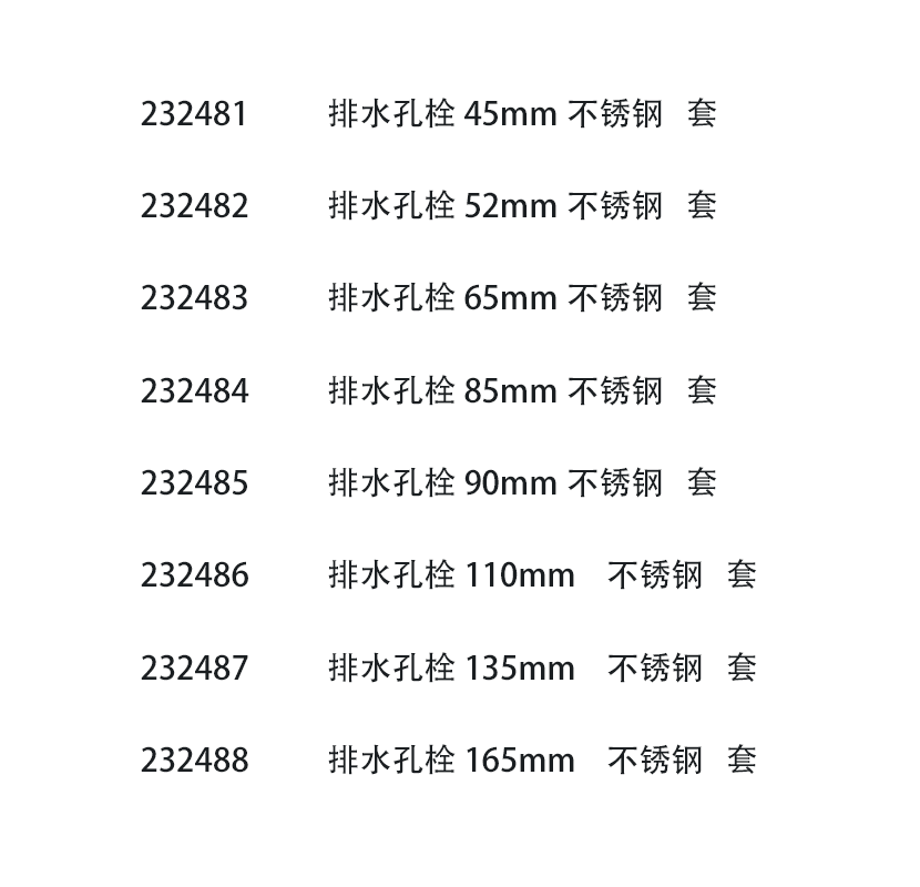 | 類型: | 排水孔栓 | ||