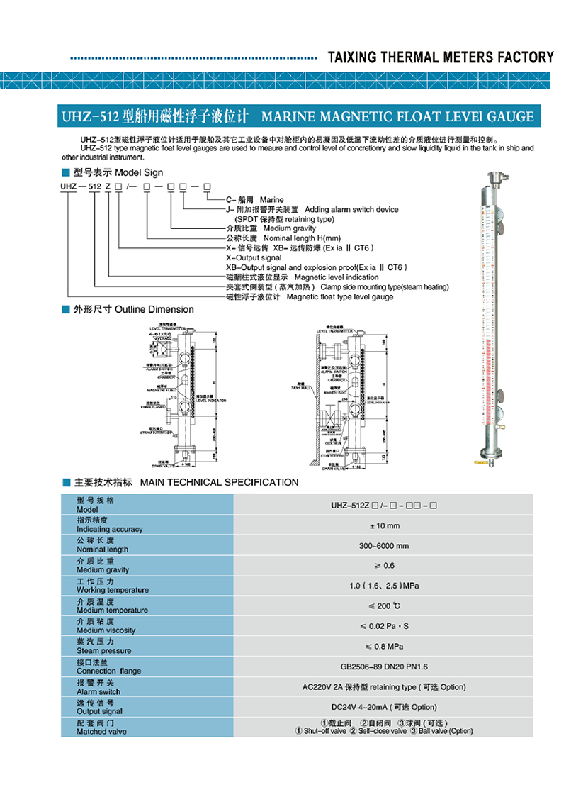 | UHZ-512型船用磁性浮子液位計(jì) | |||