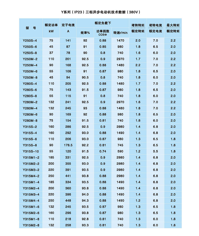 | Y系列三相異步電動機 | |||