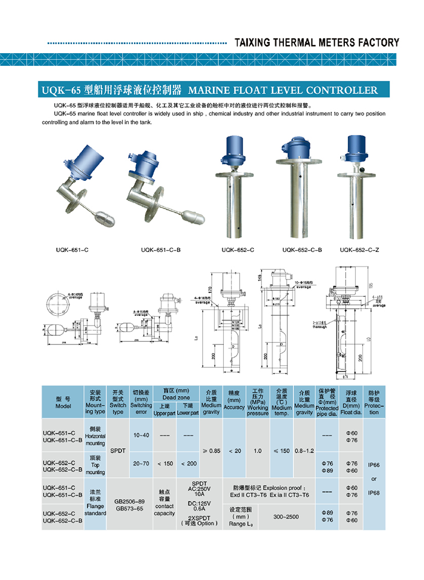 UQK-65型船用浮球液位控制器