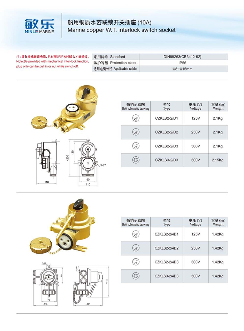 | 船用銅質水密聯鎖開關插座(10A) | |||