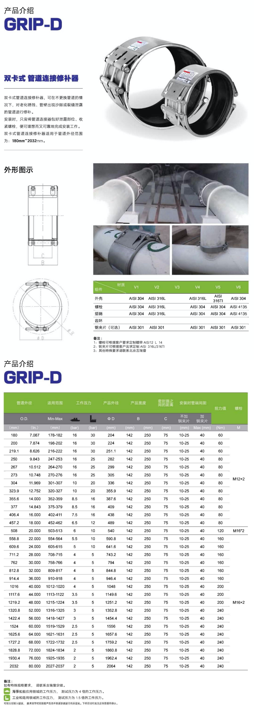 | 管道外徑: | 180mm | 適用范圍: | 178~182mm |