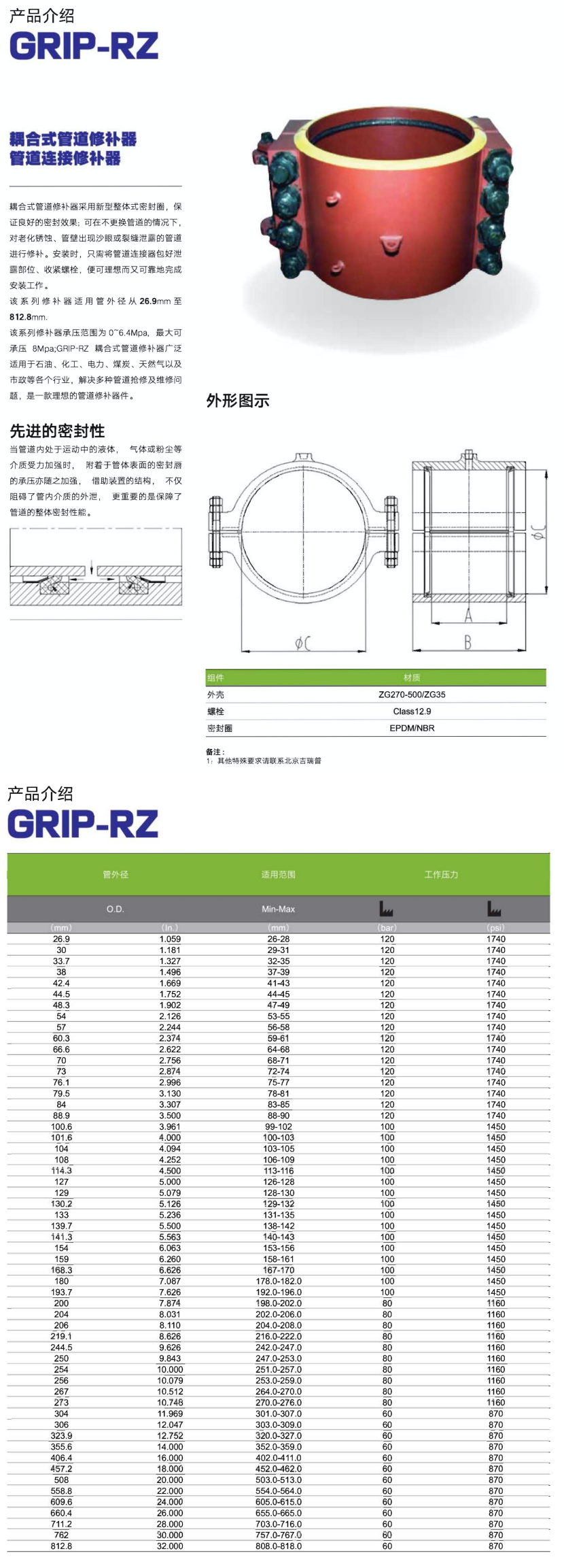 | 管道外徑: | 130.2mm | 適用范圍: | 129-132mm |