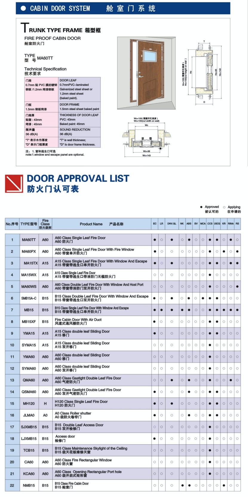 | 艙室門系統箱型框艙室防火門 | |||