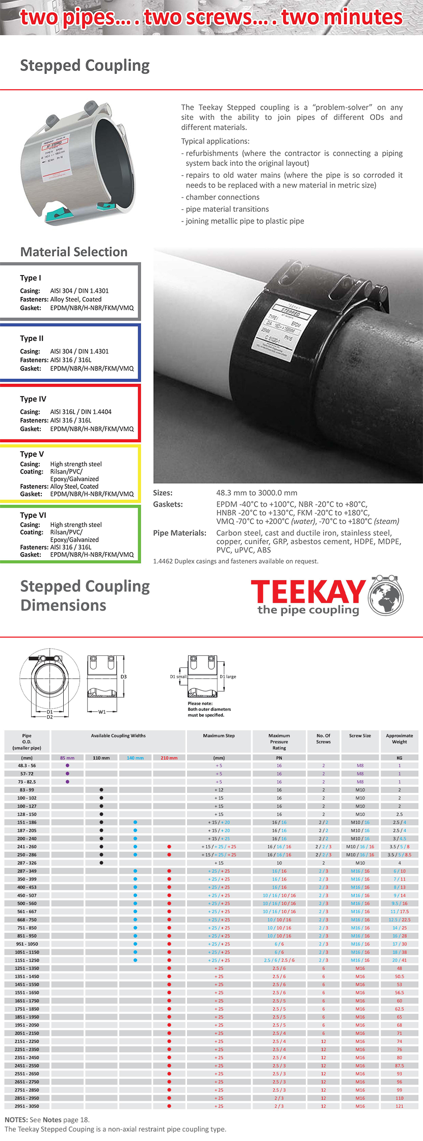 適用管道材質: Carbon steel, cast and ductile iron, stainless steel,copper, cunifer, GRP, asbestos cement, HDPE, MDPE,PVC, uPVC, ABS 外殼材質: AISI 316L / DIN 1.4404