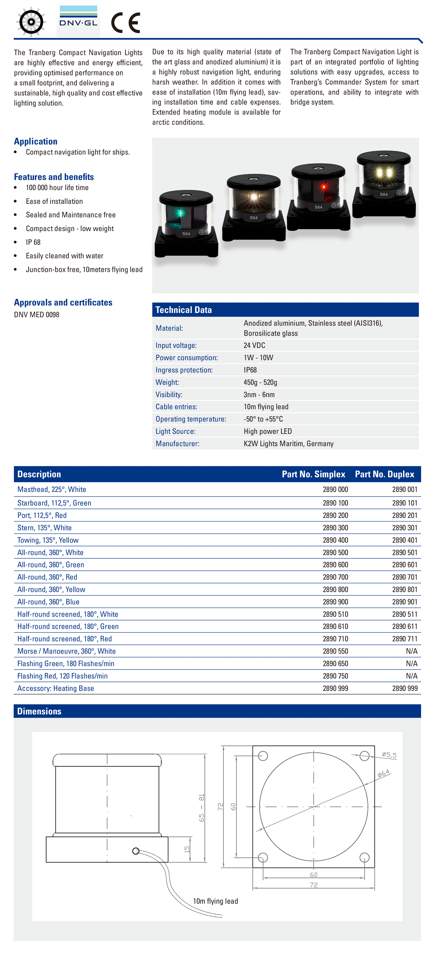 | 10W系列緊湊型航行信號(hào)燈(12~50米船只) | |||