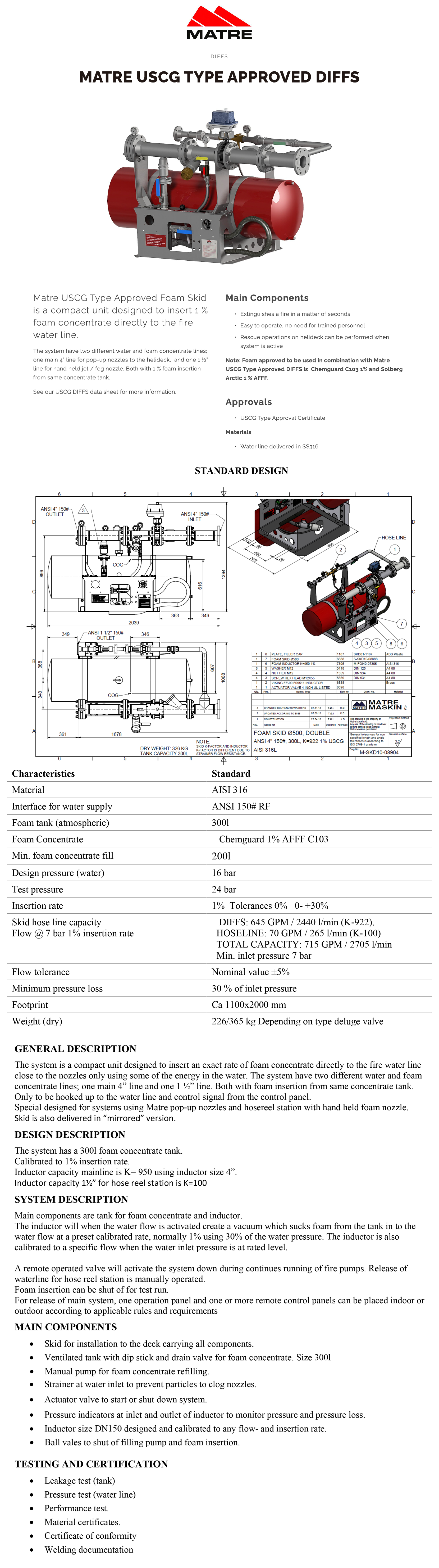 【USCG認可】200~300L撬裝泡沫劑甲板綜合消防系統