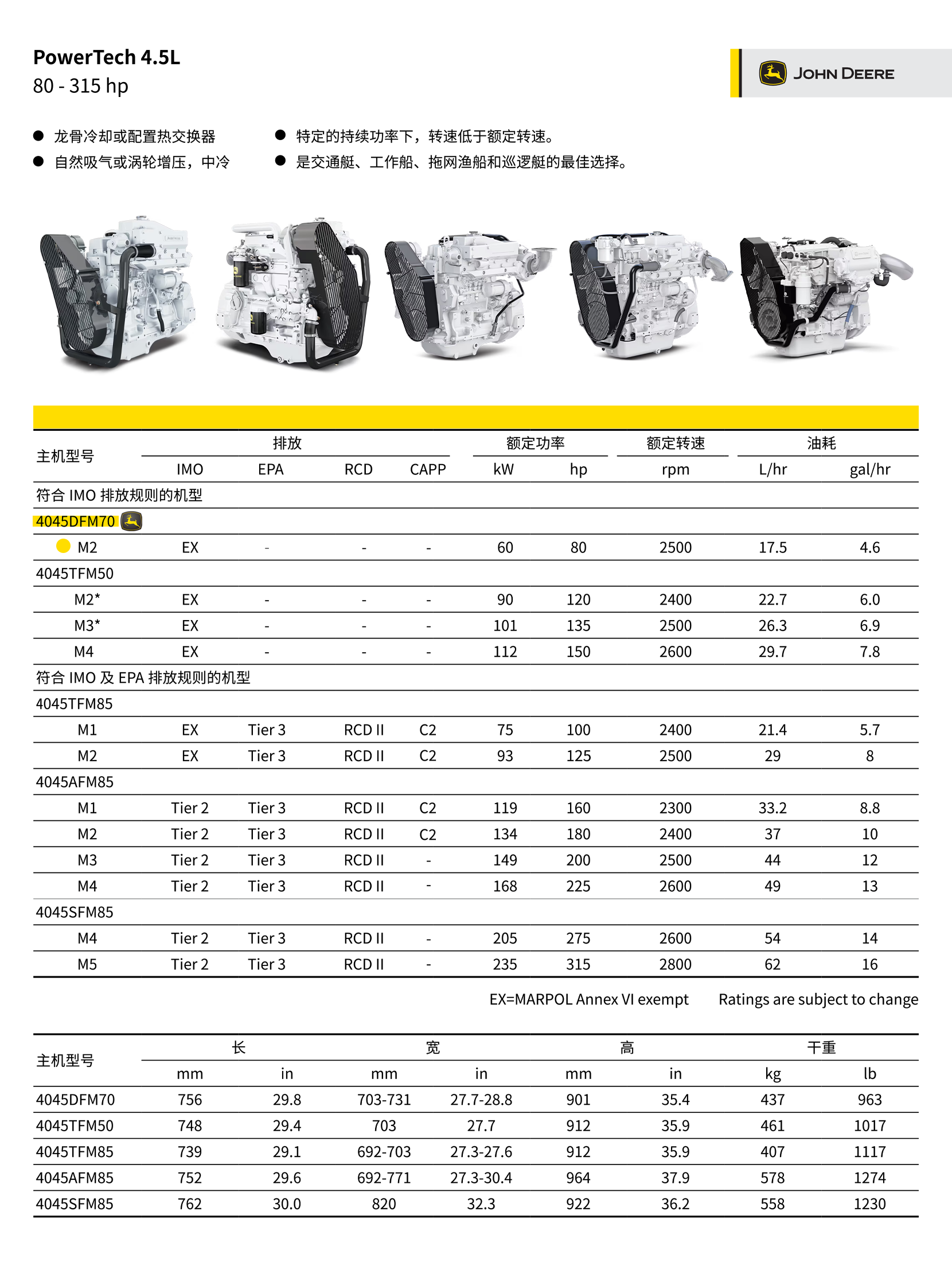 燃油消耗: 17.5L/hr 馬力: 80hp
